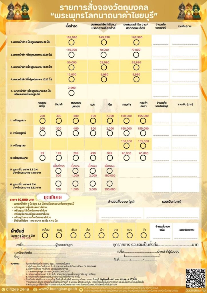 ขอเชิญผู้มีจิตศรัทธา สนใจบูชาหรือสั่งจองวัตถุมงคล “พระพุทธโลกนาถนาคาไชยบุรี“ ตามรายละเอียดด้านล่างนี้