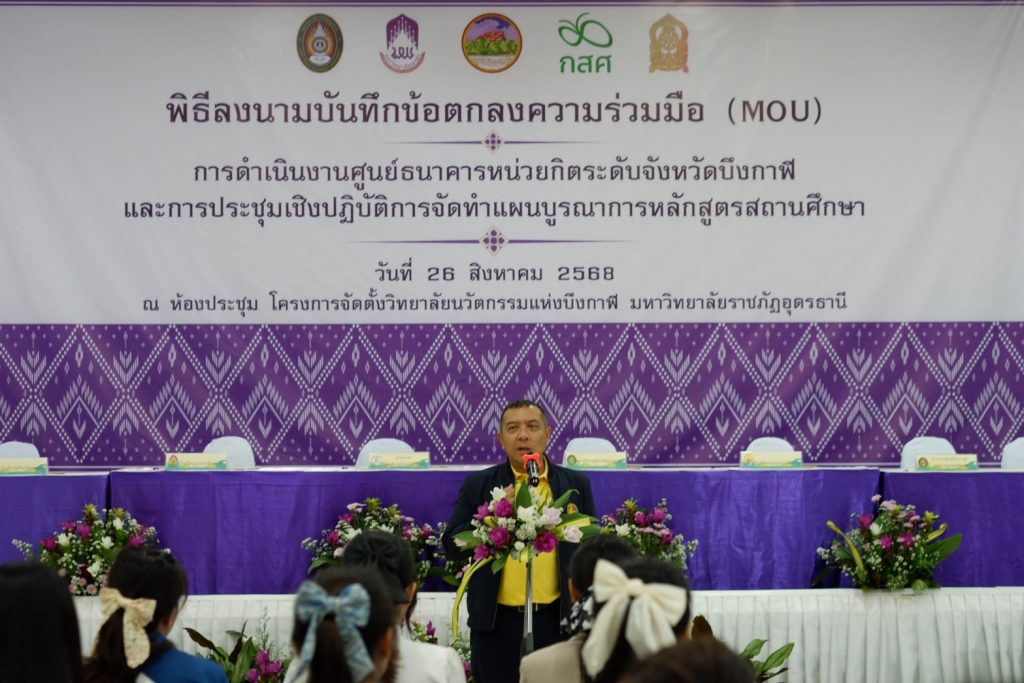 เมื่อวันที่ 26 สิงหาคม 2568 ณ โครงการจัดตั้งวิทยาลัยนวัตกรรมแห่งบึงกาฬ มหาวิทยาลัยราชภัฏอุดรธานี ได้มีพิธีลงนามบันทึกข้อตกลงความร่วมมือทางวิชาการ (MOU) ภายใต้โครงการขับเคลื่อนการดำเนินงาน ศูนย์ธนาคารหน่วยกิตระดับจังหวัดบึงกาฬ ระหว่าง สำนักงานศึกษาธิการจังหวัดบึงกาฬ มหาวิทยาลัยราชภัฏอุดรธานี และสถานศึกษาเครือข่าย 4 แห่ง ได้แก่ โรงเรียนปากคาดพิทยาคม โรงเรียนโพธิ์ทองวิทยานุสรณ์ โรงเรียนท่าดอกคำวิทยาคม และโรงเรียนศรีชมภูวิทยา