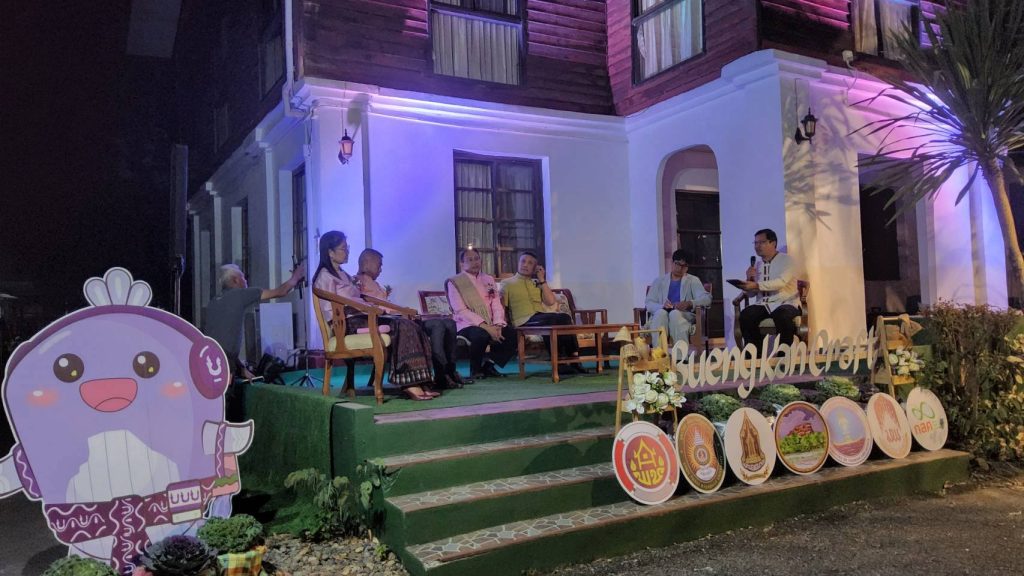 วันที่ 4 ก.พ.68 ที่บริเวณเฮือนบึงกาญจน์ไชยบุรี (จวนผู้ว่าหลังเก่า) อ.เมืองบึงกาฬ จ.บึงกาฬ สำนักงานวัฒนธรรมจังหวัด ร่วมกับภาคีเครือข่าย จัดแถลงข่าว กิจกรรมมหกรรมถนนสายวัฒนธรรมชาติพันธุ์ 4 แผ่นดิน Bueng Kan Craft สืบศิลป์ ถิ่นอีสาน ภายใต้โครงการอนุรักษ์ฟื้นฟูศิลปวัฒนธรรม ขนบธรรมเนียมประเพณี เพื่อส่งเสริมการท่องเที่ยววิถีชีวิตอารยาธรรมลุ่มน้ำโขง โดยมีนายสมหวัง อารีย์เอื้อ รองผู้ว่าราชการจังหวัดบึงกาฬ ประธานการแถลงข่าว พร้อมด้วยอาจารย์สัติยะพันธ์ คชมิตร รองคณบดีวิทยาลัยนวัตกรรมแห่งบึงกาฬ มหาวิทยาลัยราชภัฏอุดรธานีนายเฉลิมเกียรติ แผนกิจเจริญ พัฒนาจังหวัดบึงกาฬ นายณรงค์ศักดิ์ คุรุพันธ์ ท่องเที่ยวและกีฬาจังหวัดบึงกาฬ และนางพัชรนันท์ แก้วจินดา วัฒนธรรมจังหวัดบึงกาฬ ร่วมในการแถลงข่าว มีหัวหน้าส่วนราชการ แขกผู้มีเกียรติ และประชาชนร่วมงานแถลงข่าว