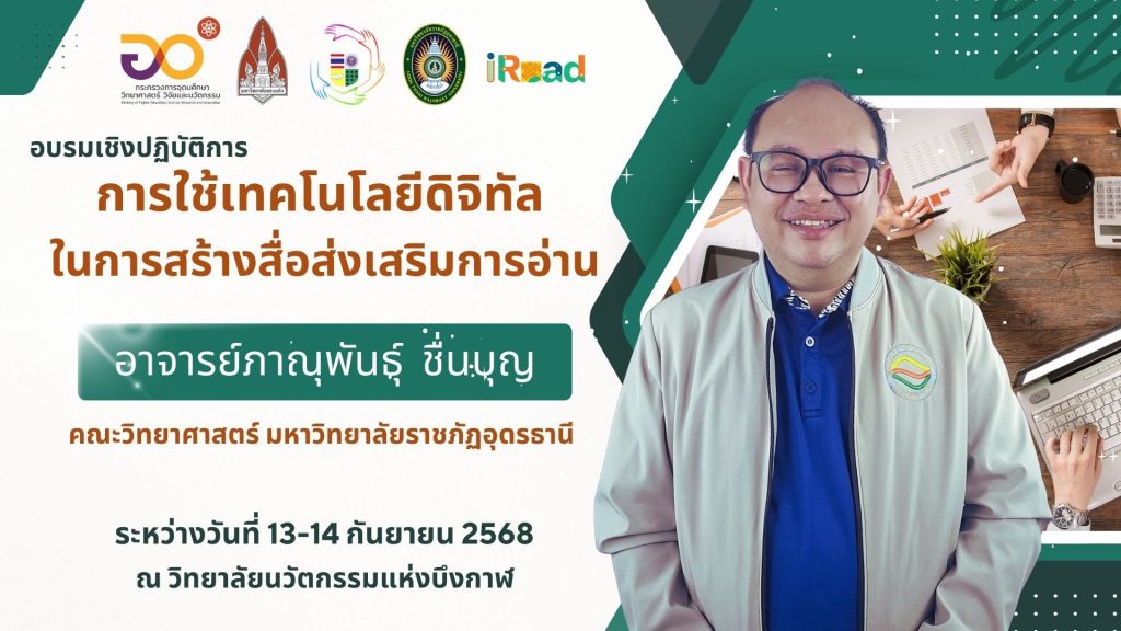 👫 คณะทำงานศูนย์วัฒนธรรมการอ่านอีสานบ้านเฮาบึงกาฬ (iRead) วิทยาลัยนวัตกรรมแห่งบึงกาฬ มหาวิทยาลัยราชภัฎอุดรธานี จัดโครงการเสริมพลังการรู้หนังสือผ่าน Soft Power: การเรียนรู้เชิงรุกเพื่อพัฒนาการอ่านออกเขียนได้อย่างสร้างสรรค์และมีความสุข กิจกรรมอบรมเชิงปฏิบัติการ “การใช้เทคโนโลยีดิจิทัลในการสร้างสื่อส่งเสริมการอ่าน” วันที่ 13–14 กันยายน 2568