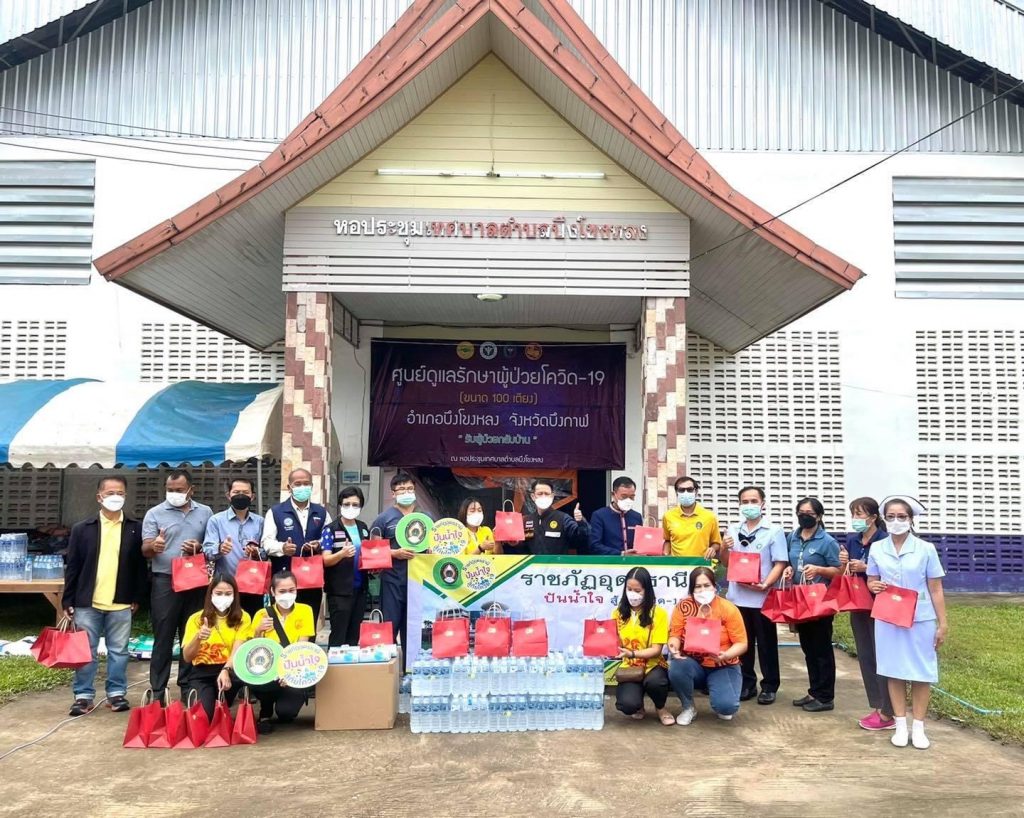 จัดทำโครงการราชภัฏปันน้ำใจเพื่อแบ่งปันเครื่องอุปโภค บริโภค สู้ภัยโควิด 19 โดยมีน้ำดื่ม เครื่องใช้ส่วนตัว ผลไม้ เป็นต้น นำส่งไปยังโรงพยาบาลสนามและศูนย์กักตัวเพื่อเฝ้าระวังการระบาดของโรคติดเชื้อจากไวรัสโคโรนา 2019 ในอำเภอต่างๆ ของจังหวัดบึงกาฬ ตามโครงการ “ราชภัฏอุดรธานี ปันน้ำใจ สู้ภัยโควิด-19”