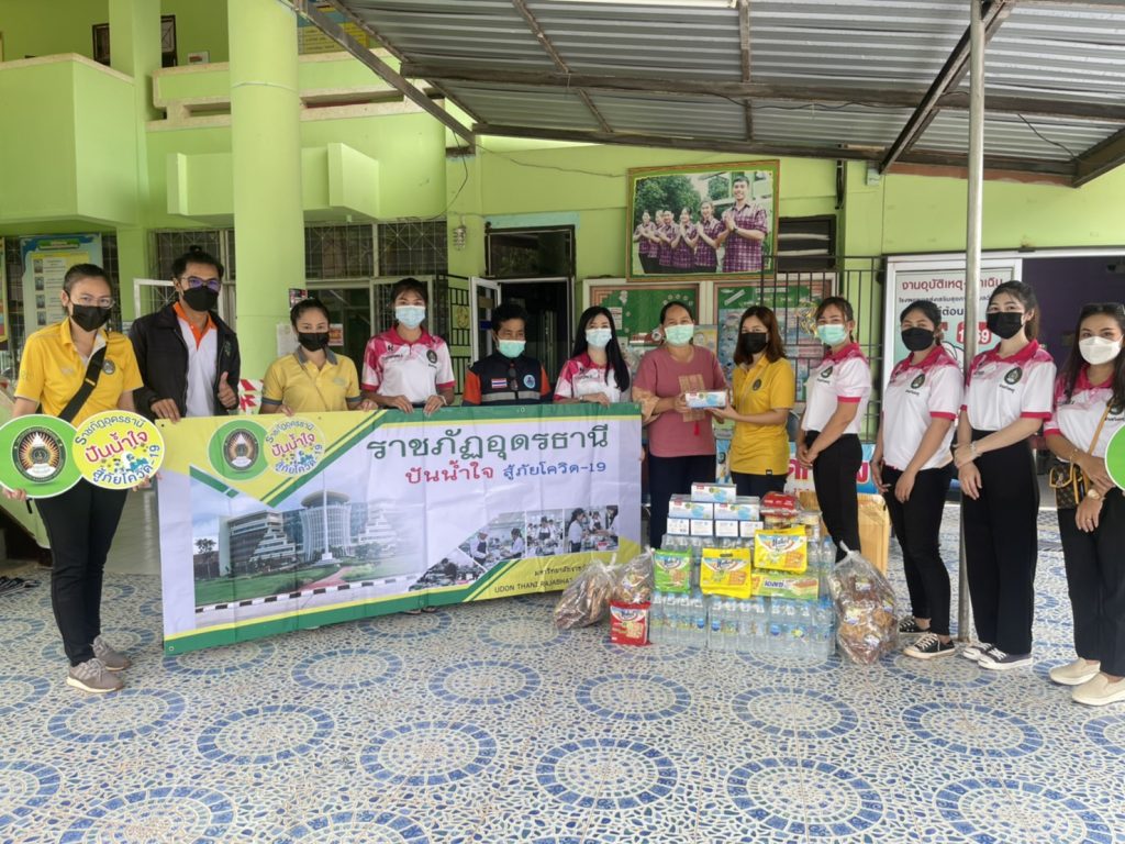 จัดทำโครงการราชภัฏปันน้ำใจเพื่อแบ่งปันเครื่องอุปโภค บริโภค สู้ภัยโควิด 19 โดยมีน้ำดื่ม หน้ากากอนามัย ขนม เป็นต้น นำส่งไปยังศูนย์พักคอย รพ.สต.วังชมภู ตำบลวังชมภู อำเภอพรเจริญ จังหวัดบึงกาฬ เพื่อเฝ้าระวังการระบาดของโรคติดเชื้อจากไวรัสโคโรนา 2019 ในอำเภอต่างๆ ของจังหวัดบึงกาฬ ตามโครงการ “ราชภัฏอุดรธานี ปันน้ำใจ สู้ภัยโควิด-19”