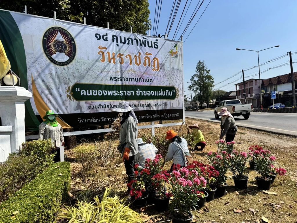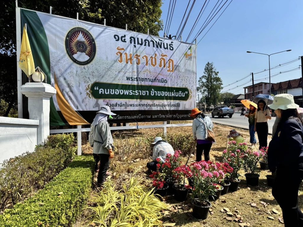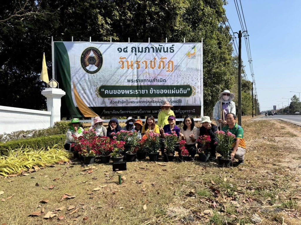 14 กุมภาพันธ์ 2568 วันสถาปนามหาวิทยาลัยราชภัฏ นำโดย ดร.กาญจนวรรณ สีทอง หัวหน้าสำนักงานวิทยาลัยนวัตกรรมแห่งบึงกาฬ มหาวิทยาลัยราชภัฏอุดรธานี ร่วมกับอาจารย์และบุคลากร ช่วยกันปลูกต้นไม้ เนื่องใน “วันราชภัฏ”
