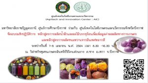 3) หลักสูตรการผลิตน้ำผักและผลไม้บรรจุร้อนเพื่อเพิ่มมูลค่าผลผลิตทางการเกษตรและหลักสูตรการผลิตขนมหวานจากมันเทศหลากสี