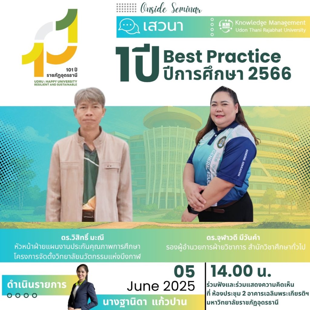 เสวนา 1 ปี Best Practice ปีการศึกษา 2566 มหาวิทยาลัยราชภัฏอุดรธานี Read More »