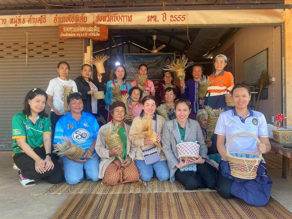“วิทยาลัยนวัตกรรมแห่งบึงกาฬ มหาวิทยาลัยราชภัฏอุดรธานี จัดอบรมเชิงปฏิบัติการออกแบบลายกระติบข้าวจากคล้า เสริมทักษะและสร้างโอกาสให้ชุมชนบ้านห้วยทราย”